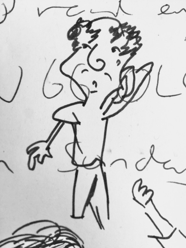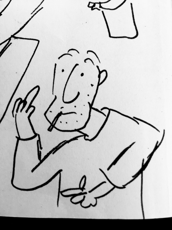 When his train came, I drew a bloke on the next page who was balding blatantly, and he didn’t comb it over to conceal it cos my dad doesn’t like that on account of growing up with Bobby Charlton doing it when he was a kid and it looked daft after a while - especially when running.