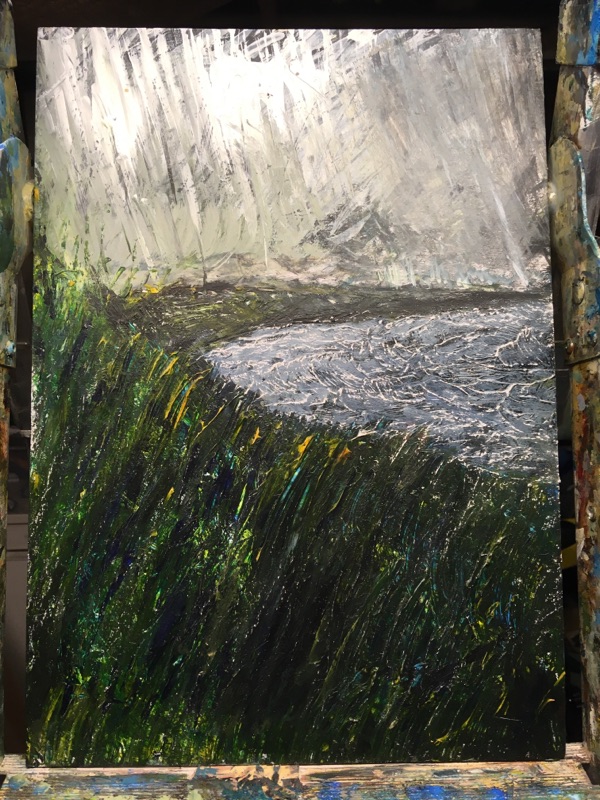 ‘Oh,’ I said, ‘this old thing. I am painting the hills in the distance and the choppy sea.’